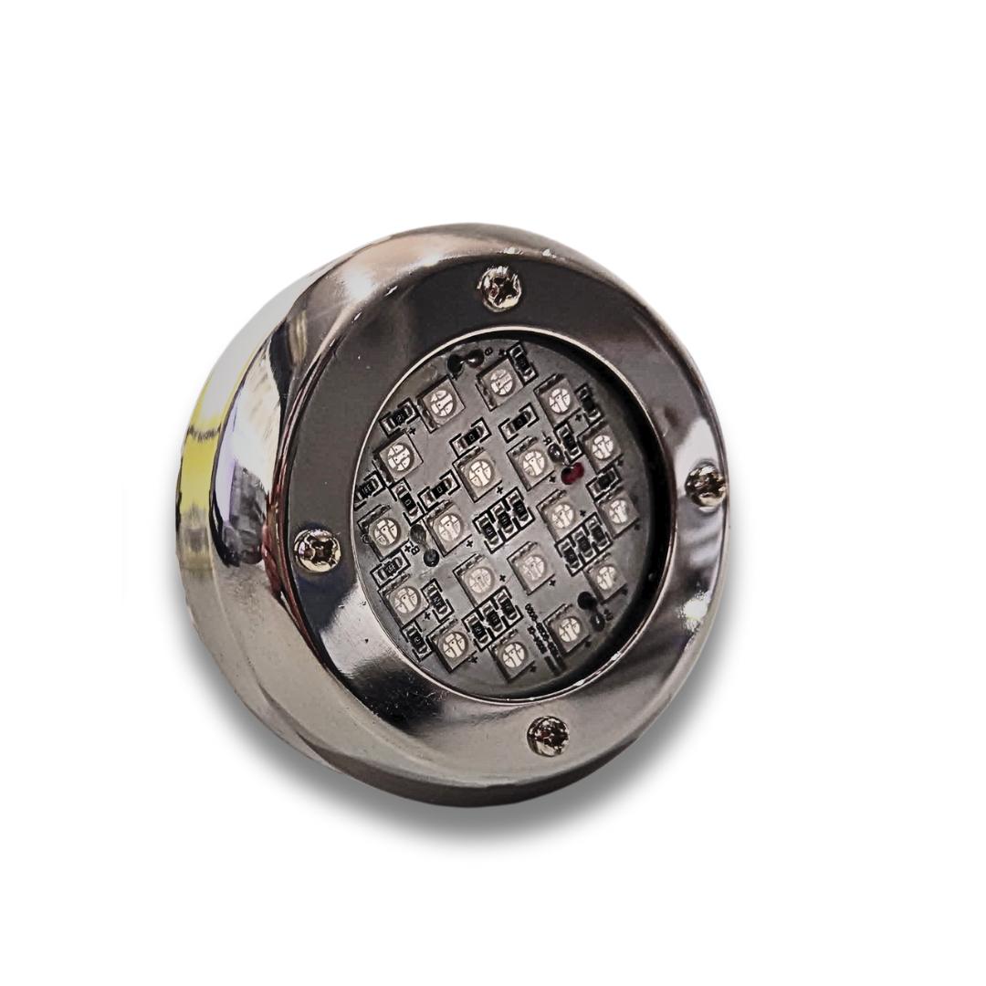 Spot subacuatico de acero inoxidable para piscinas de fibra de vidrio.